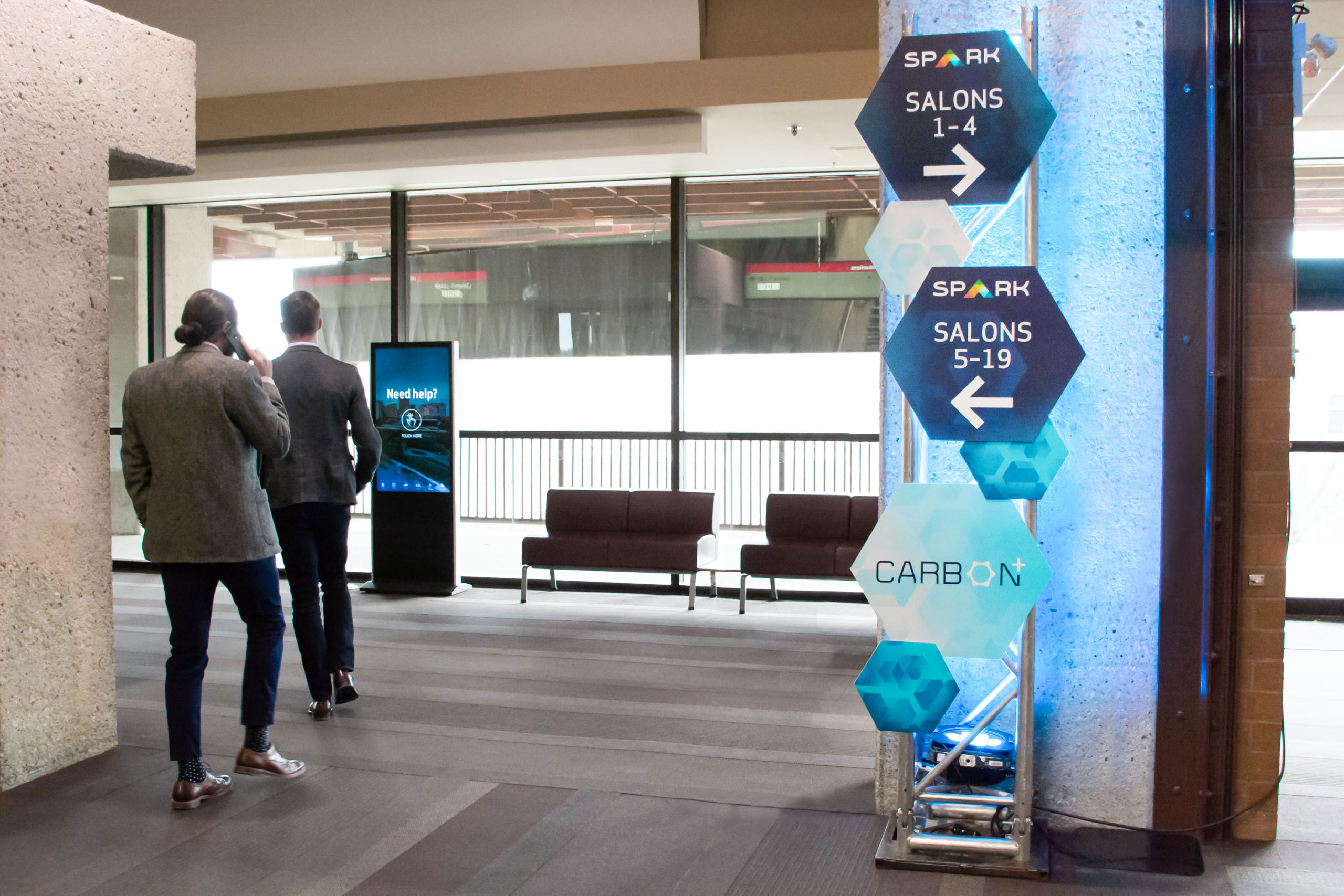 SPARK is a conference hosted by Emissions Reduction Alberta that brings together professionals from across the clean-technology innovation sector. Utilizing the theme Carbon+, we created an identity for the conference that was based on the form of a carbon molecule. The unique pieces we created helped tie the conference together across the convention centre and beyond.